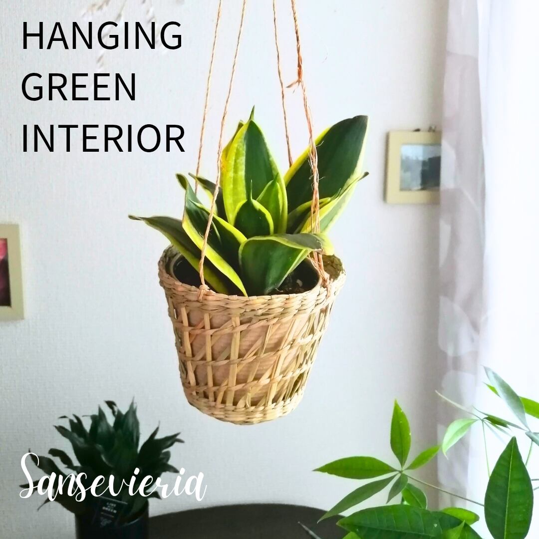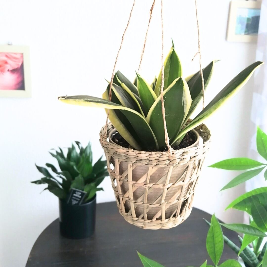 人気の観葉植物 サンスベリア・ゴールデンハニー を、ナチュラル素材のハンギングバスケットとセットにしました。