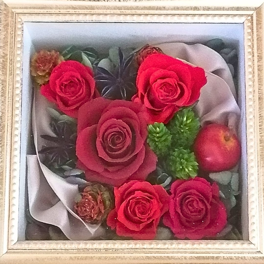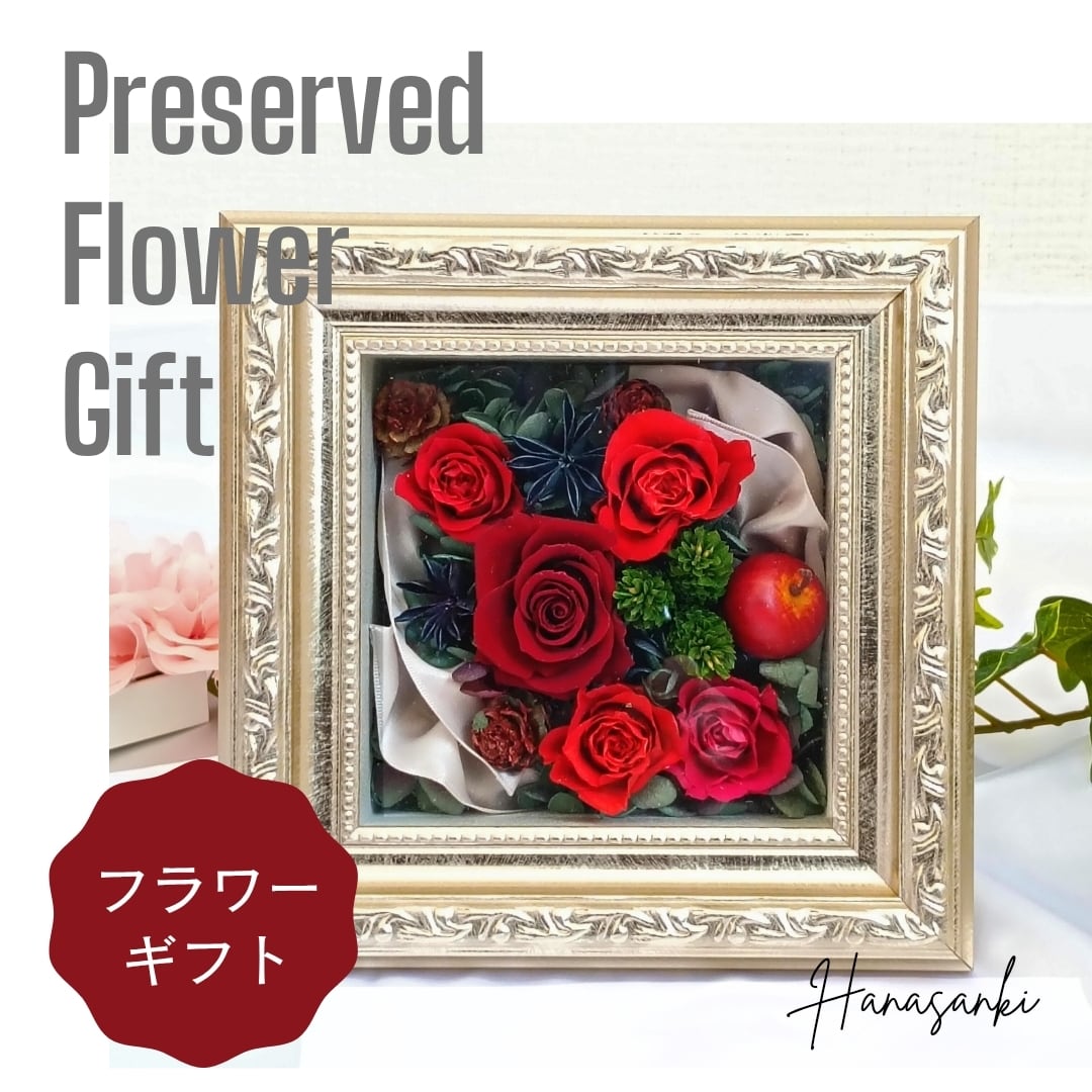 【贈り物に♪】赤バラプリザーブドフラワーのロココ調フレームアレンジ プレゼント お祝い ギフト 誕生日 記念日 母の日 壁飾り インテリア