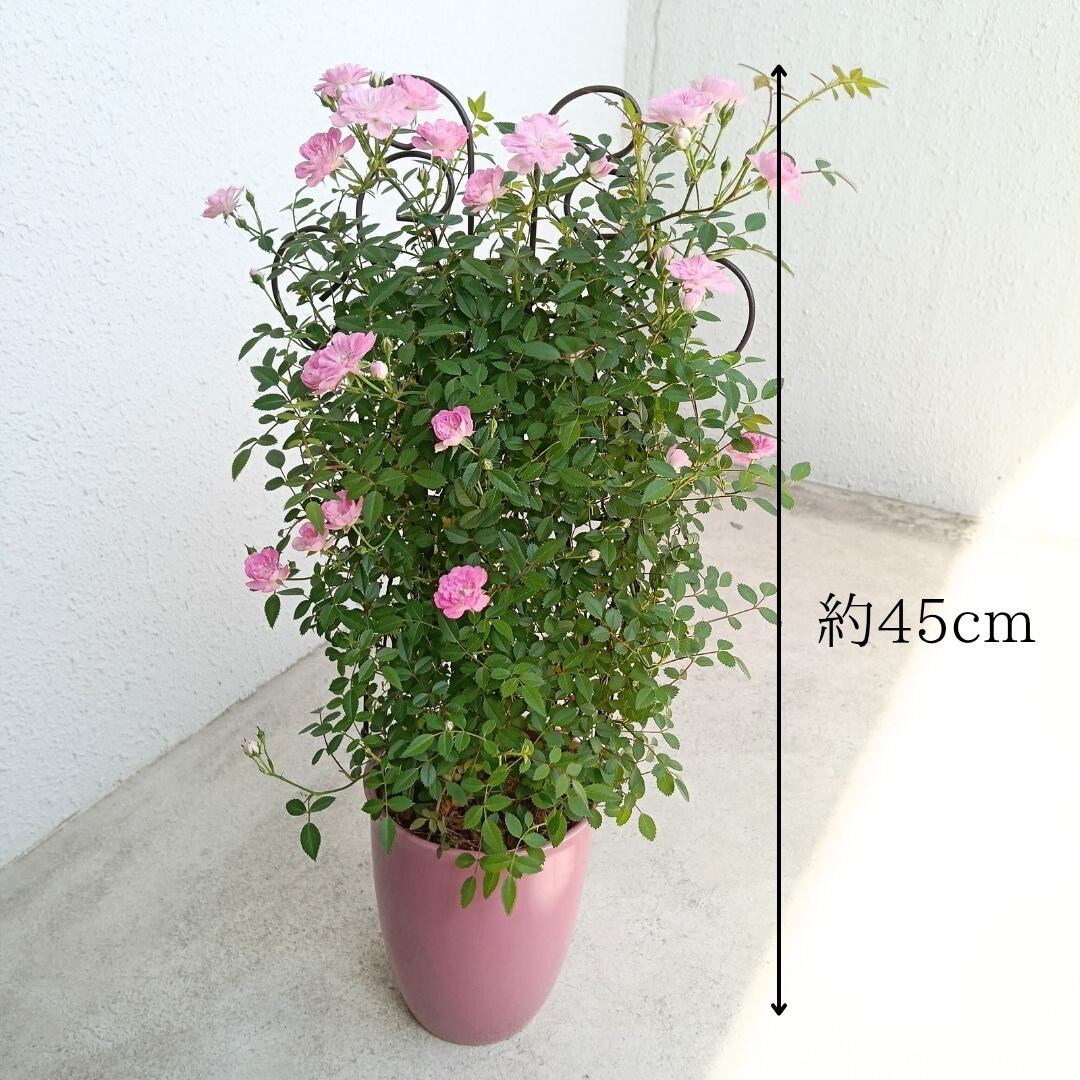 【予約受付中】ミニつるバラの鉢植え(薄ピンク色) 真珠貝 ピンク トレリス仕立て アイアンフェンス 4号鉢 花鉢 生花 鉢花 ガーデニング 薔薇 贈り物 プレゼント 母の日花 直送OK