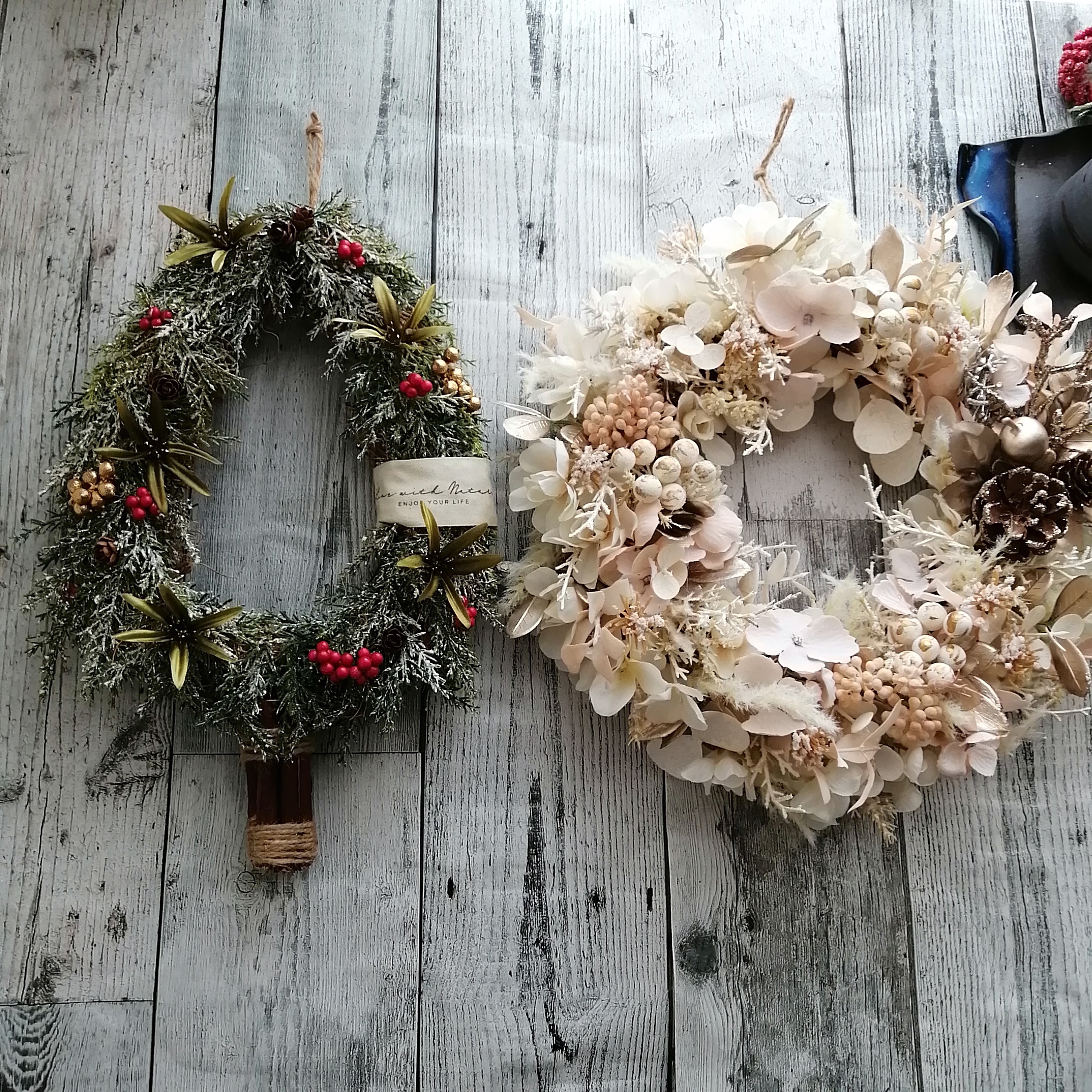 こちらは、花三喜.のオリジナルハンドメイド作品のクリスマスリースです!