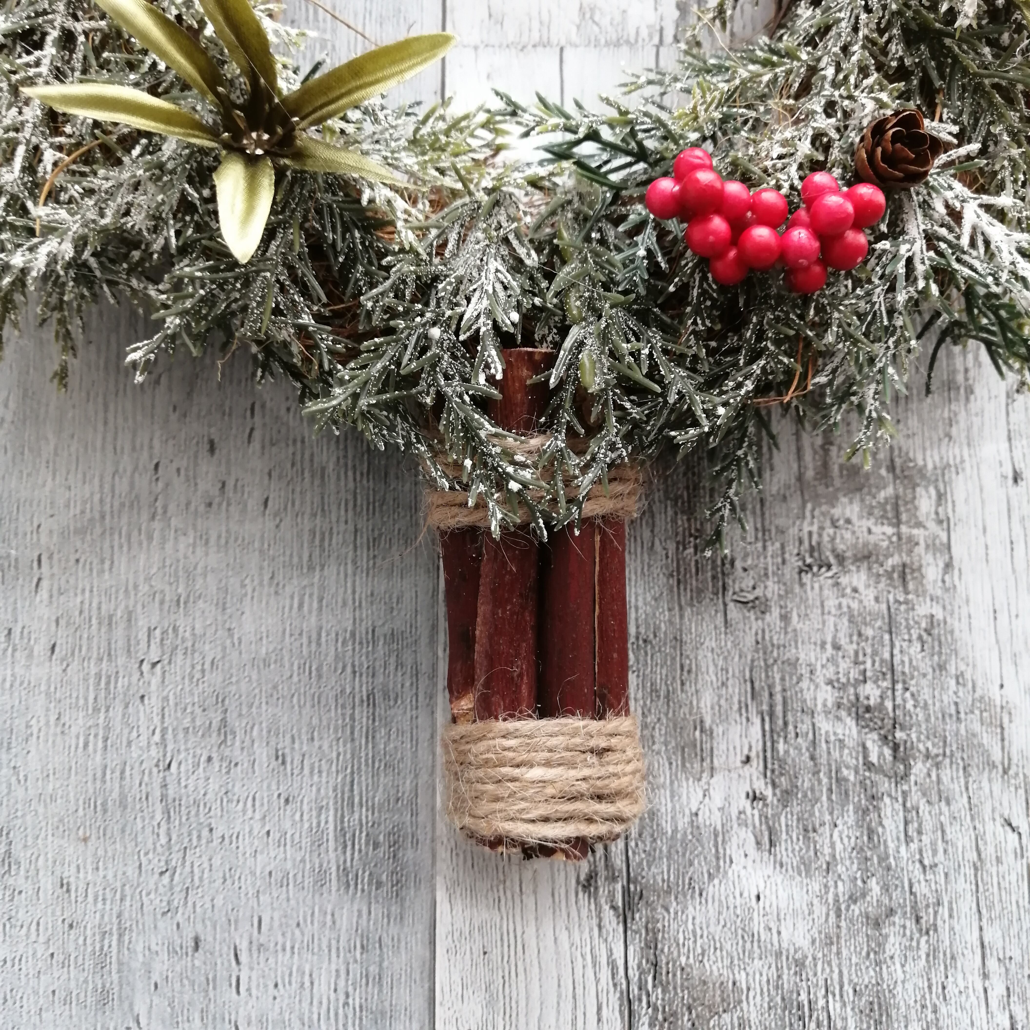パウダースノー付きのグリーンが、おしゃれにクリスマスを演出します。