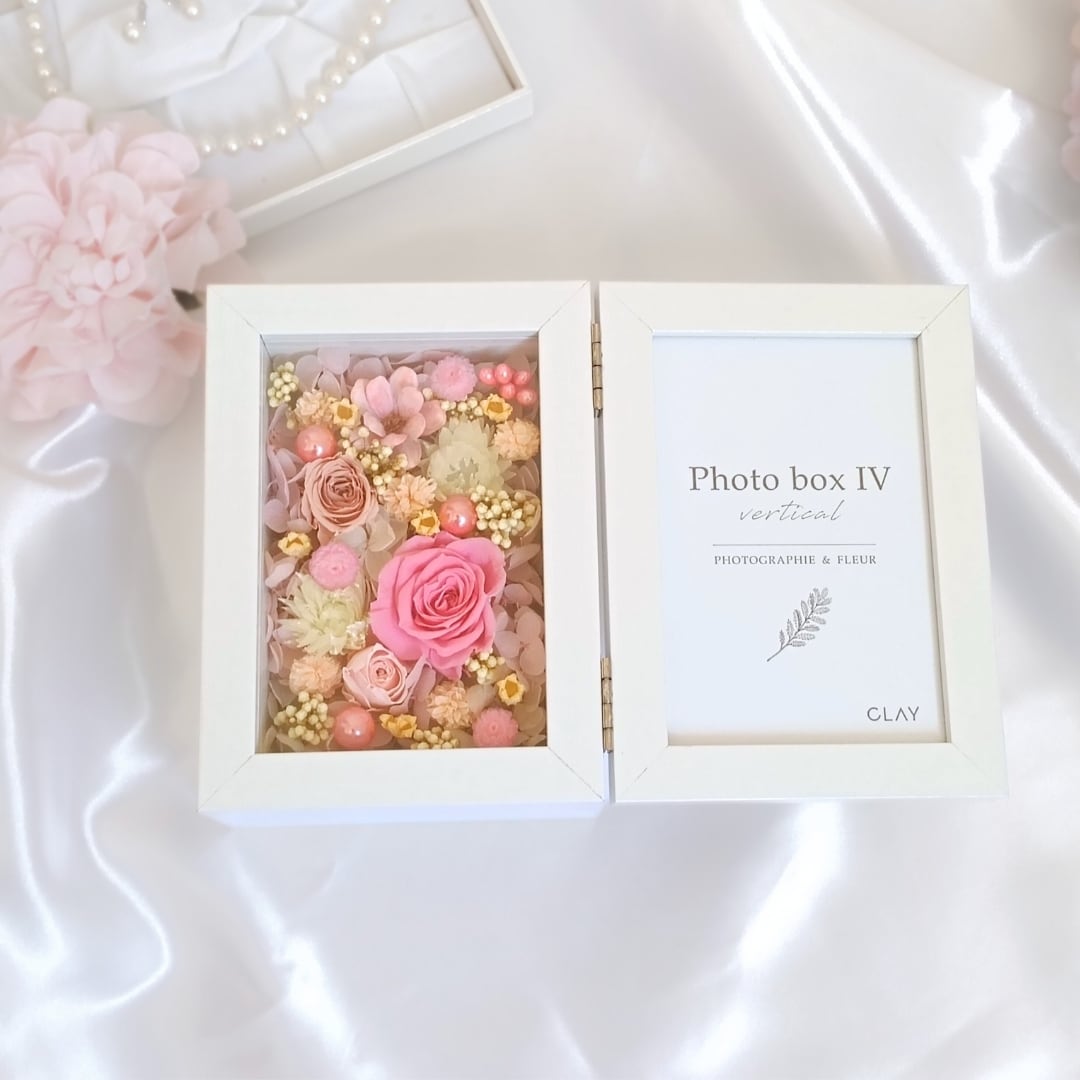 ■こちらは、華やかなプリザーブドフラワーと一緒に、大切な思い出の写真を飾ることができる「フォトフレームアレンジ」です。